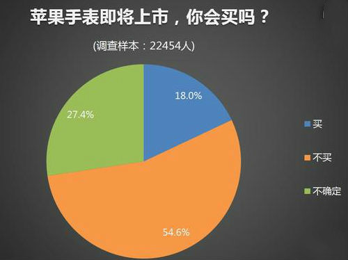 我們都知道,任何產品在其預售前,博得極高的關注度是關鍵,這一點Apple?Watch不但做到了,而且還做的很好。而在預售期,有購買意向的用戶群體,即潛在購買者的人數是關鍵,同時也是關鍵中之最。現在Apple?Watch已經走到了第二個關鍵點,在這個關鍵點之最表現如何呢?讓我們一起先來看看,下面是一份民眾購買蘋果手表意向調查結果,調查總體為22454人。